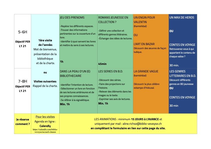 Les enseignant-e-s de degré primaire qui souhaitent effectuer une ou plusieurs visites avec leur classe sont prié-e-s de contacter la bibliothèque pour annoncer leur visite, sauf si ces visites sont organisées par le-la responsable d’établissement.